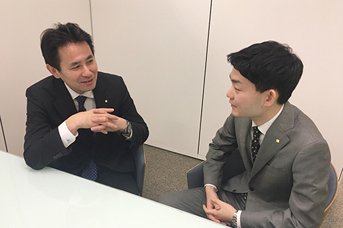 This is a program in which third-year employees and their seniors from other departments are paired up for regular mentoring sessions. We have been conducting trials since 2018, and are preparing the system for a full-scale introduction as we expand its scope of coverage.